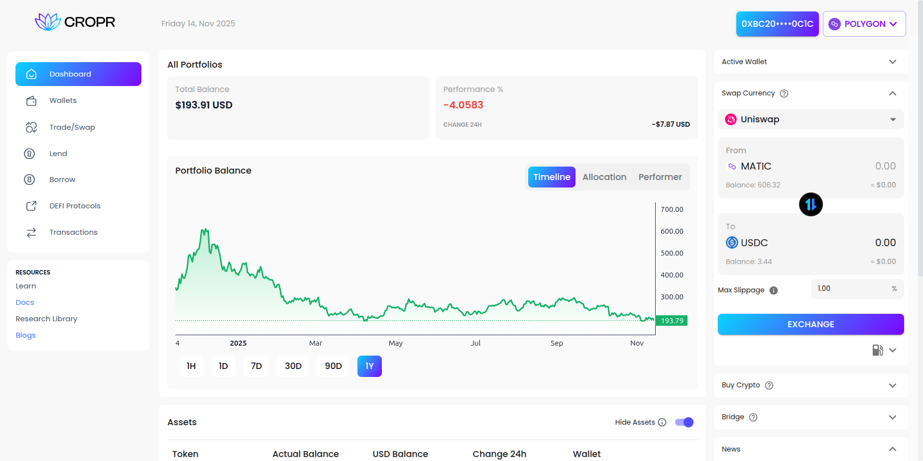 Think of CROPR as your crypto command centre. One dashboard for every wallet and blockchain you use. Trade, lend, stake, rebalance – all from a single screen. This blog explores how CROPR’s portfolio management system simplifies DeFi investing, helping you capture better yields with less effort.