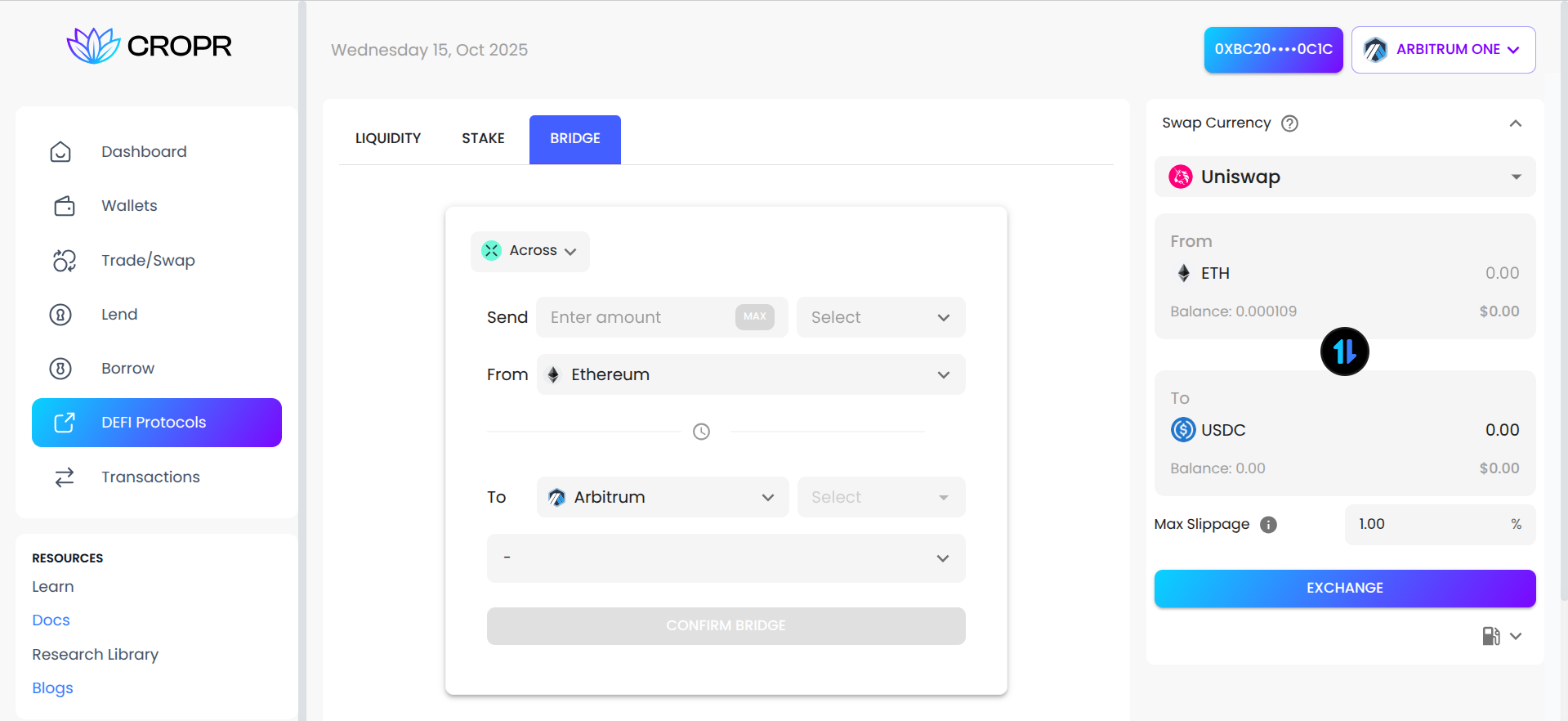- Integrated DeFi Actions: Swap, lend, borrow, stake, or bridge without leaving CROPR, reducing friction and risk.