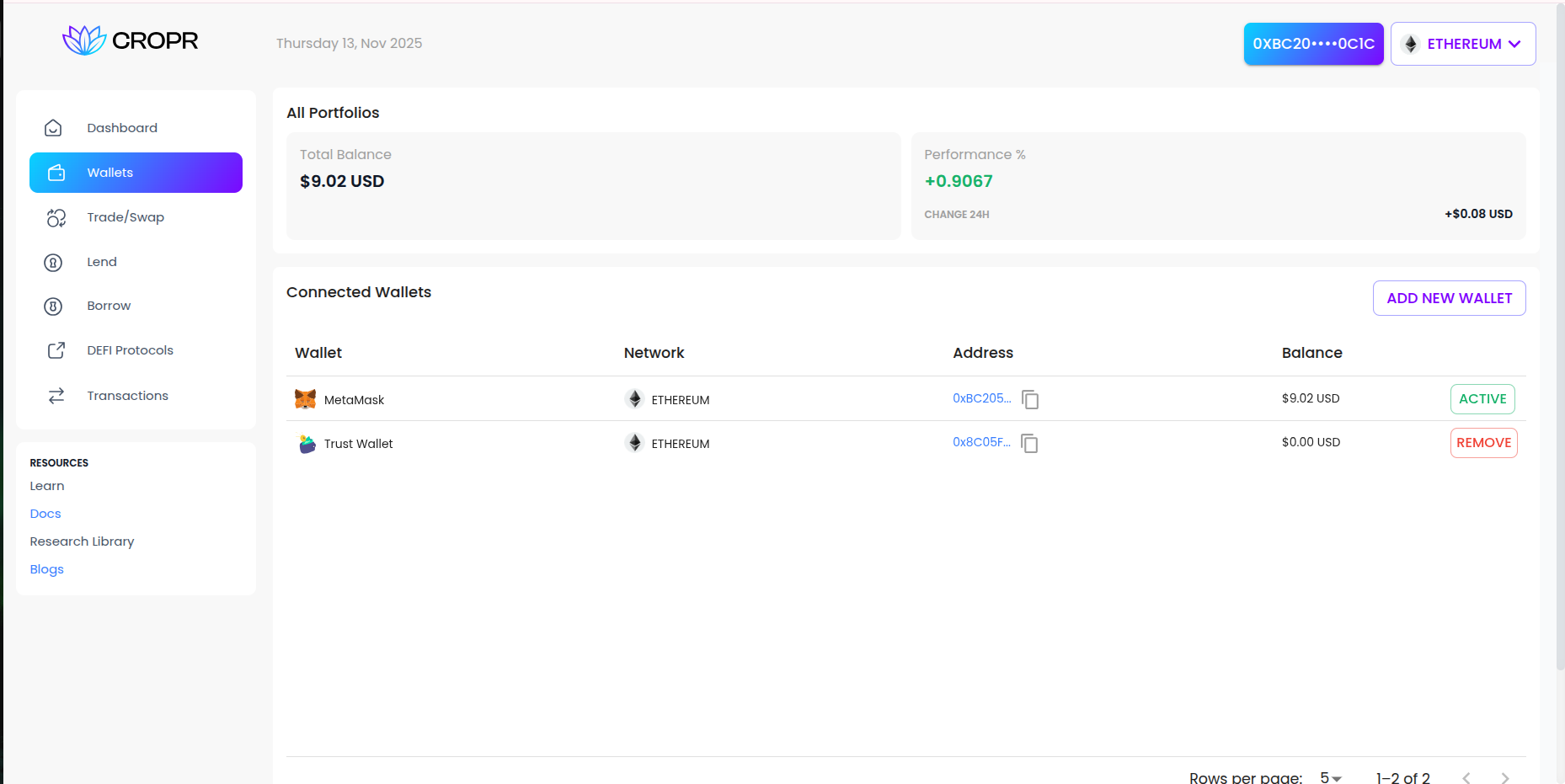 With CROPR, this process becomes organized and efficient. The platform connects multiple wallets without requiring users to move funds or compromise their existing security setup. CROPR’s single dashboard provides real-time insights across chains and protocols, making it significantly easier to monitor performance, track rewards, and spot opportunities without the extra steps of navigating between different applications and platforms.
